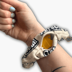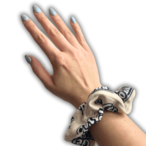 Love this comfy get personal scrunchie with a stashy part, i love keeping some small belongings in it, the material is really good quality and you can wear it in your hair, on your wrist or even on your ankle which is where I wear it when I go out with my friends and need to keep my house key safe! I love all the scrunchies and collect them all now as they are the best. I love the design of this one xx