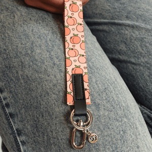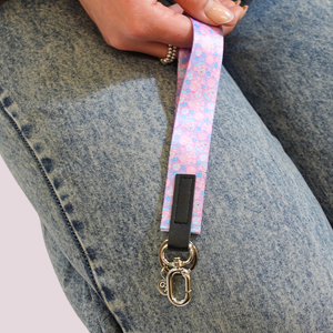 Wristlet inStrawberry design has the new silky feel and fits around the wrist there is a ring and clip on this which holds all your safety needs i love the little gp logo on this as well just right for your keys and items to pop in you bag or pocket or can be hung onto a Anti Theft lanyard