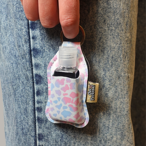 Patterned Keyring clip on pouch & sanitiser bottle/Farbgel case